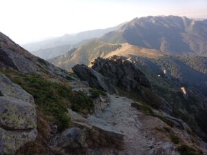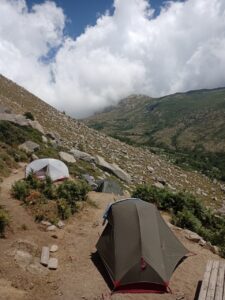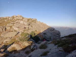 Erst ging es nochmal runter….und dann wieder rauf…. und irgendwann auf den letzten Gipfel gegen 12.30h….boah Mann….für mich war das heute hart…aber das war noch nicht alles….denn dann ging es zum Refuge, dass nochmal über 200HM darunter lag….also weiter laufen…meine beiden Trinkflaschen mit insgesamt 1,5L leer…aber ich hatte noch eine Reserve von ca. 1L…Gegen 13.30h ungefähr war ich dann beim Refuge…. Orangina…. große Dose Ravioli gegessen…Zelt aufgebaut (das liegt ca. 80m den Berghang runter… schlecht zu laufen)…..duschen… Wäsche waschen und abends dann nochmal Abendessen….es ist jetzt kurz nach 21h…habe gerade noch ein paar Ameisen aus dem Zelt geschmissen….liege im Schlafsack und esse Schokolade….Internet gibt es hier keins… deswegen geht die Blog-Email erst morgen raus. Gute Nacht 😃