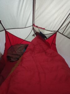 Letzte Nacht hat es vermutlich am Zelt reingezogen….habe einen steifen Hals…und ab und zu Krämpfe…. Kommt vielleicht auch durch den Rucksack….denke aber ich habe einen Zug bekommen…