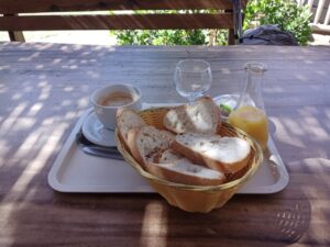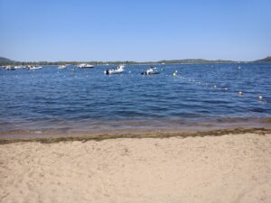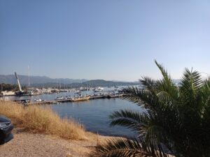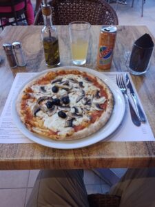 So, den Kleinbuss nach Porto Vecchio mit Wanderern gefüllt was möglich war und auf ging’s. Dort am Busbahnhof angekommen, habe ich den Fahrer gefragt, ob er uns – wir waren mittlerweile fünf Personen – zu dem Campingplatz fahren kann, wo ich hin wollte….yeah, er sagte zu…..also wieder rein und ca. fünf Kilometer weiter gefahren….den Fahrer bezahlt und auf dem Campingplatz eingecheckt…schöner Platz mit Strand….allerdings in einer großen Bucht… entsprechend warm war das Wasser…macht alles einen guten Eindruck…ich habe mir einen schattigen Platz ausgesucht und habe von den Nachbarn spontan noch übrig gebliebenes Risotto angeboten bekommen 😃 . Dann ging es erstmal zum Strand und ins Meer….und anschließend duschen und ins Restaurant…..es gab leckere Pizza 😃.