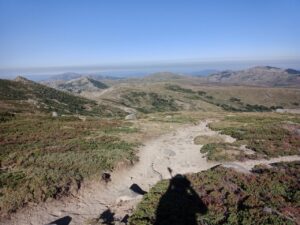 Heute Morgen habe ich noch einen Blog abgesetzt und die Kommentare beantwortet…los ging es gegen 6.30h mit einem Müsli Riegel im Bauch… Der erste Anstieg hat mir schon schwer zu schaffen gemacht….als ich diesen geschafft hatte, musste ich erstmal einen Apfel und 3 weitere Müsliriegel essen….das fing ja schon gut an…also weiter… heute war es nicht mehr bewölkt und die Sonne zeigte schon morgens was sie drauf hat…der Weg führte heute viel über schattenlose Berg-Grade, insgesamt über 750HM hoch und 830 HM runter…. erstmal vom Ausgangspunkt auf 1820m hoch auf knapp 2000m, dann runter auf ca. 1500m… dazwischen immer Mal wieder hoch und runter… dann kam der 2. Gipfel mit ca. 1800m….im Zickzack ging es hoch….immer wieder einer mehr….pffff….dann endlich angekommen….als ich oben weiter ging und zurück sah, hockte ein Hund auf dem Weg…bei dem letzten Refuge gab es zwei, die gleich aussahen. Einer kam mir gestern mit Wanderern entgegen, die mich fragten ob ich ihn mitnehmen wolle, weil er ihnen nachgelaufen ist….das war ungefähr 2km vom Refuge entfernt….aber er wollte nicht mit mir…. irgendwann kam er dann mit anderen Wanderern, die mich überholten mit….und irgendwann war er dann bei mir bis zu Refuge. Der Hund heute war schon ca. 2 Std. vom Refuge entfernt….er hängte sich an 2 Wanderer, die ihn auch wieder irgendwie zum Refuge zurück bekommen wollten .. irgendwann fanden sie wohl welche, die in entgegen gesetzter Richtung liefen und denen der Hund zurück folgte….keine Ahnung… vielleicht ist das die Tagesbeschäftigung des Hundes…. Wanderern begleiten… 😃