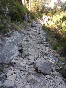 Dann kam das beschwerlichste vom Tag….der Abstieg…. teilweise auf allen Vieren …. kletternd…über schiefe Felsplatten quer und gerade runter laufend…. Felsbrocken…. Steine….war wieder so ziemlich alles dabei, was mich zeitweise dann mal kurz leicht zum Ausrasten brachte 😉😃…aber wenigstens gab es auch mal relativ normale Pfade…gegen 11.30h war ich dann schon am Ziel…..mit Internet 😀…. chillen, leckeres 4 Gänge Menü und früh schlafen gehen… morgen habe ich 15km vor mir…gute Nacht 🤓