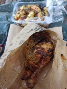 Heute war ein fauler Tag….und heißer…ich war mehrmals kalt abduschen….. morgens war ich in einem Laden in der Nähe Frühstück holen…. Cappuccino gab es vom Campingplatz….damit ging ich dann zum Strand….gegen Abend holte ich mir in der Nähe von einem Grillstand Hähnchen und Kartoffeln…und Schokoladen Mousse vom Supermarkt….das große Problem waren die Wespen, die schon nach kurzer Zeit da waren…ich musste ins Zelt flüchten….aber ob das das kleinere Übel war …hmm…..davon unabhängig, dass es nicht sehr bequem war, schossen mir beim Essen und mit Moskitonetz verschlossener Tür bald der Schweiß aus allen Poren….😃…..naja …war wieder eine Erfahrung…..dann habe ich mir einen mobilen Kühlschrank gebaut …hätte ich mal früher machen müssen….mein DryBag, 2Kg Eiswürfel und eine durchgefrorene Flasche Wasser….hatte aber Glück, dass es in einem Laden sowas gab…Mal schauen, wie lange es hält….so….bin schon müde…viele Grüße und gute Nacht 😀
