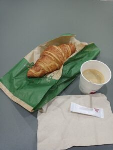 Um die 07.30h war ich dann am Hafen, wo auch der Busbahnhof ist, von dem der Bus zum Airport abfährt. Ich habe mir erstmal ein Café zum Frühstücken ausgesucht….gute Wahl 🤓.