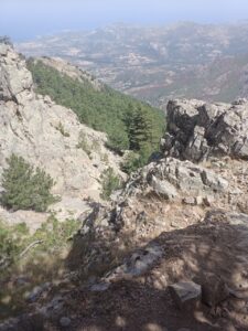 Es ging immer und immer höher und dann kamen auch die Kletterpassagen. Den Morgen über lag der Weg weitgehend im Bergschatten….das habe ich genossen….und, dass es noch nicht so warm war…gegen Vormittag/ Mittag verlief der Weg immer mehr in der Sonne…waren ja auch schon ordentlich Höhenmeter zurückgelegt…irgendwann sah ich dann eine Hütte auf der anderen Seite einer Schlucht…sollte dies das Tagesziel sein….ja…es wurde immer deutlicher…es waren noch ca. 2km Weg dahin…aber irgendwie sah es länger aus…..aber naja…ich mobilisierte meine Kraftreserven und bin Schritt für Schritt weiter…immer Mal wieder kurz stehen geblieben…und yeah…da war es dann …das Refuge… besser gesagt, ein teilweise Provisorium…die eigentliche Hütte wurde durch ein Brand vernichtet und muss erst wieder aufgebaut werden…zuerst ging ich direkt zur Wasserquelle….ich hatte unterwegs mehr Bedarf an Wasser, als ich dabei hatte…ich dachte an das Gewicht…aber viel weiter hätte ich nicht laufen können.